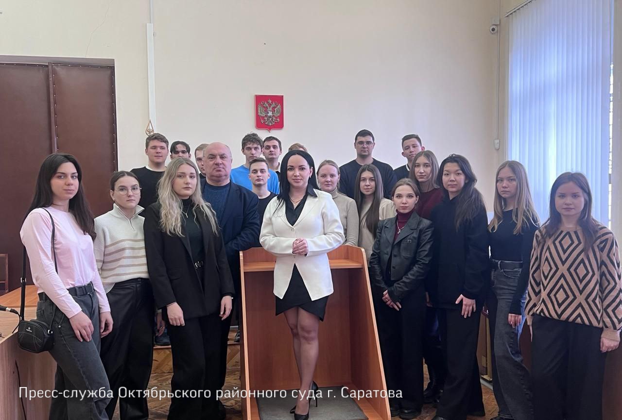 | Судья Октябрьского районного суда г. Саратова Кузнецова К.А. в присутствии студентов 3 курса Поволжского института (филиала) ВГУЮ (РПА Минюста России) провела открытое судебное заседание по уголовному делу в отношении лица, обвиняемого в совершении преступления, предусмотренного ч. 3 ст.159 УК РФ.