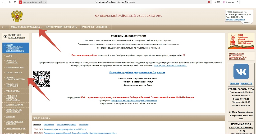 ![]() | Для ознакомления со списком дел, назначенных к слушанию, необходимо перейти по ссылке на официальный сайт Октябрьского районного суда г. Саратова: https://oktyabrsky--sar.sudrf.ru/modules.php?name=sud_delo или воспользоваться специальным QR-кодом. После перехода по указанной ссылке автоматически будет выведен список дел, назначенных к слушанию на текущую дату. |