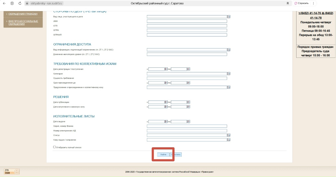 ![]() | 5. Далее необходимо пролистать страницу вниз и нажать на кнопку «Найти». Расположение кнопки «Найти». |